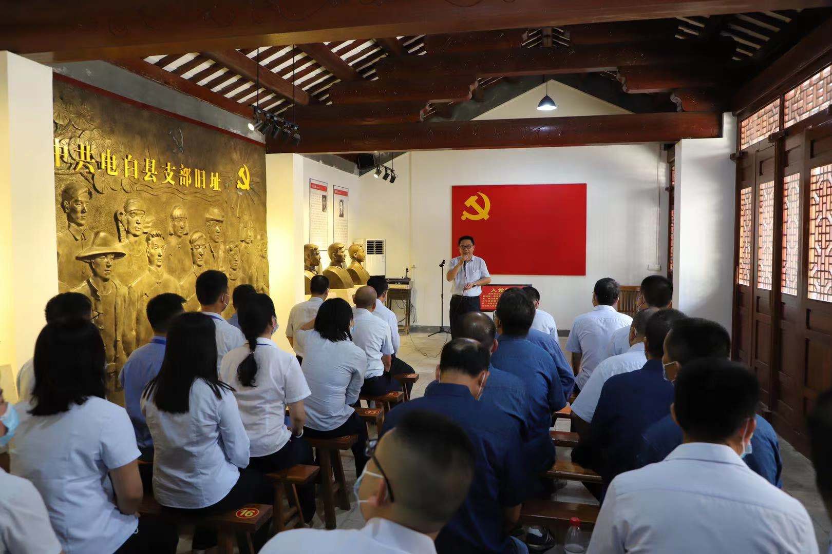 展廳內(nèi),一件件展品,一張張照片,一段段史實讓大家仿佛回到了那段激情燃燒的歲月。參觀活動的人員不時停下腳步仔細觀看,認真聽取講解員的講解,深刻認識到紅色政權(quán)來之不易,新中國成立不容易,今天的幸福生活更是來之不易。隨后,在中共電白縣支部舊址大廳,集團黨委書記、董事長黃遠維帶領(lǐng)集團黨員干部職工面向鮮紅的中國共產(chǎn)黨黨旗,舉起右拳,重溫入黨誓詞,鏗鏘有力的宣誓響徹大廳。