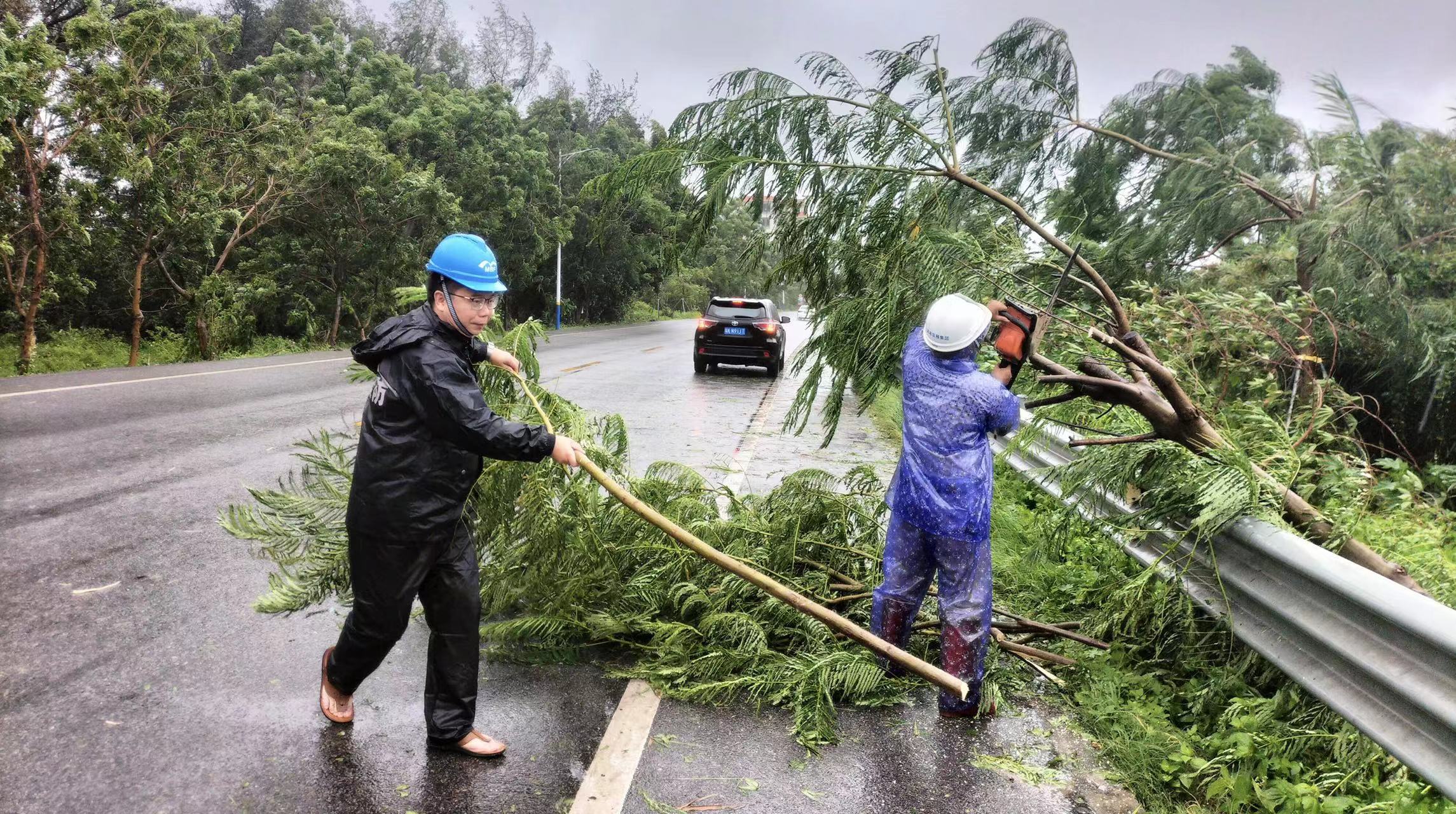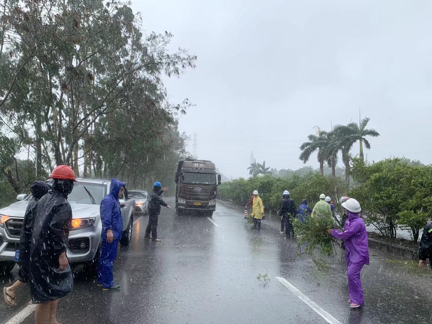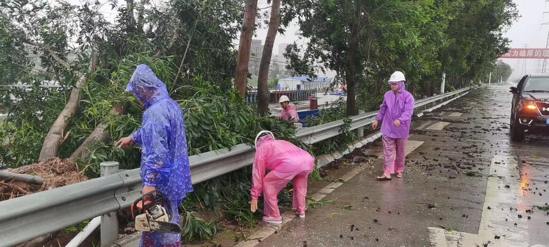 “集團(tuán)安委辦第一時(shí)間組織黨員干部先鋒隊(duì)沖鋒在前分赴項(xiàng)目施工建設(shè)現(xiàn)場(chǎng)、生產(chǎn)經(jīng)營(yíng)場(chǎng)所開展安全隱患排查;道路養(yǎng)護(hù)組工作人員深夜對(duì)博賀灣大橋進(jìn)行交通管控;集團(tuán)主要領(lǐng)導(dǎo)親入一線協(xié)助清理倒伏樹木和被淤泥堵塞的排水口……”