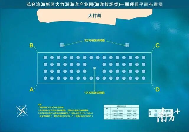 茂名濱海新區(qū)大竹洲海洋產(chǎn)業(yè)園深水網(wǎng)箱示意圖。