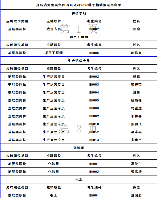 茂名濱海發展集團有限公司2020年夏季招聘入圍面試名單 (基層類崗位)及相關事項的公告 根據《茂名濱海發展集團有限公司2020年夏季招聘公告》精神,現將基層類崗位入圍面試的人員名單及相關事項公告如下:...