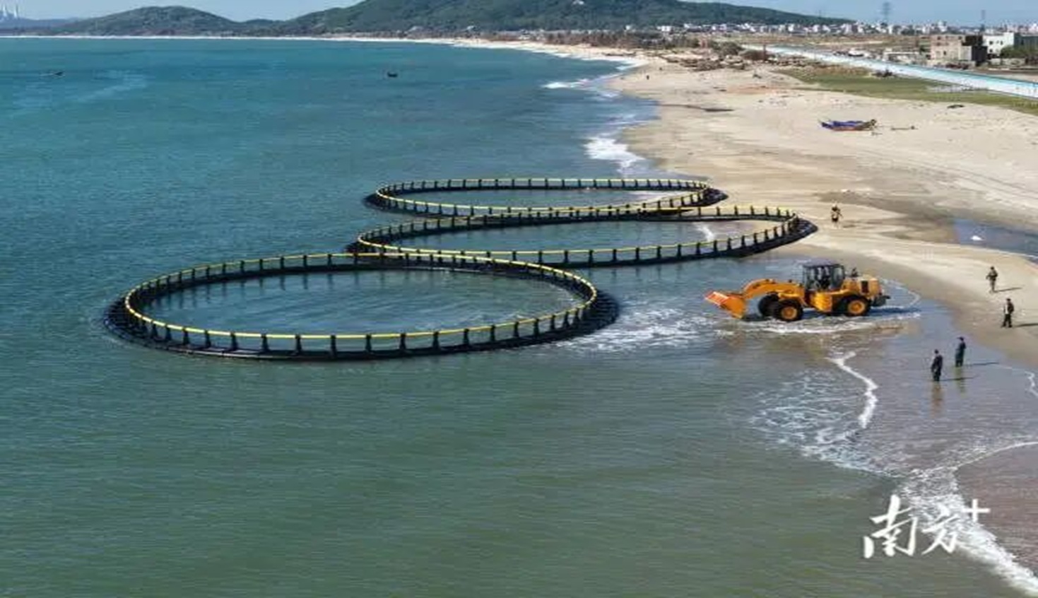 茂名大竹洲海洋牧場首批深水網箱下海,投產進入倒計時