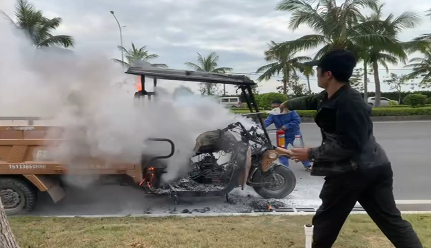 2025年11月20日中午,位于電城水質凈化廠斜對面的博賀灣大道上,一輛三輪車突發火情,火勢迅速蔓延,現場情況十分危急。 險情發生時,電城水質凈化廠員工程廷標正在廠區執行例行巡查任務,第一時間發現火情...